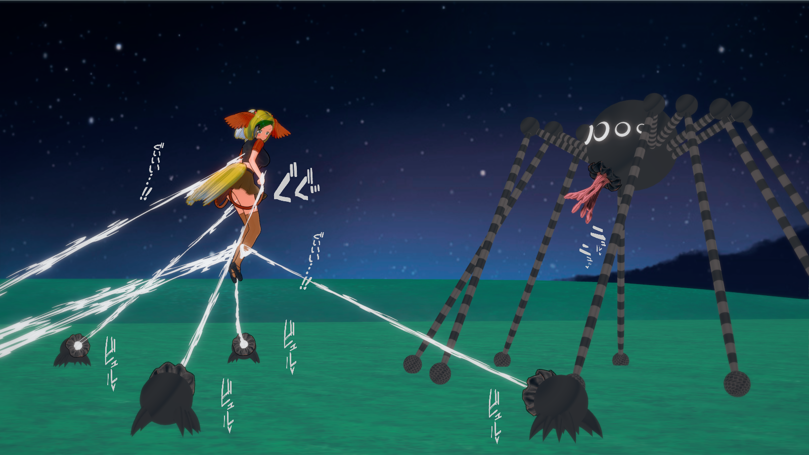頭も大蜘蛛の口から伸びる触手に絡めとられ尾羽が少し見えるだけとなった